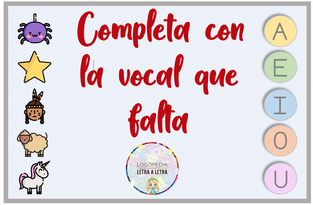 Hoy os traigo una actividad para completar vocales, una forma diferente de trabajar la conciencia fonológica con los más pequeños que están iniciando la lectoescritura.