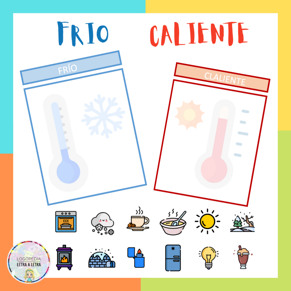 Los peques tendrán que colocar el pictograma en el cuadro correspondiente respondiendo a la pregunta ¿Está frío o caliente?